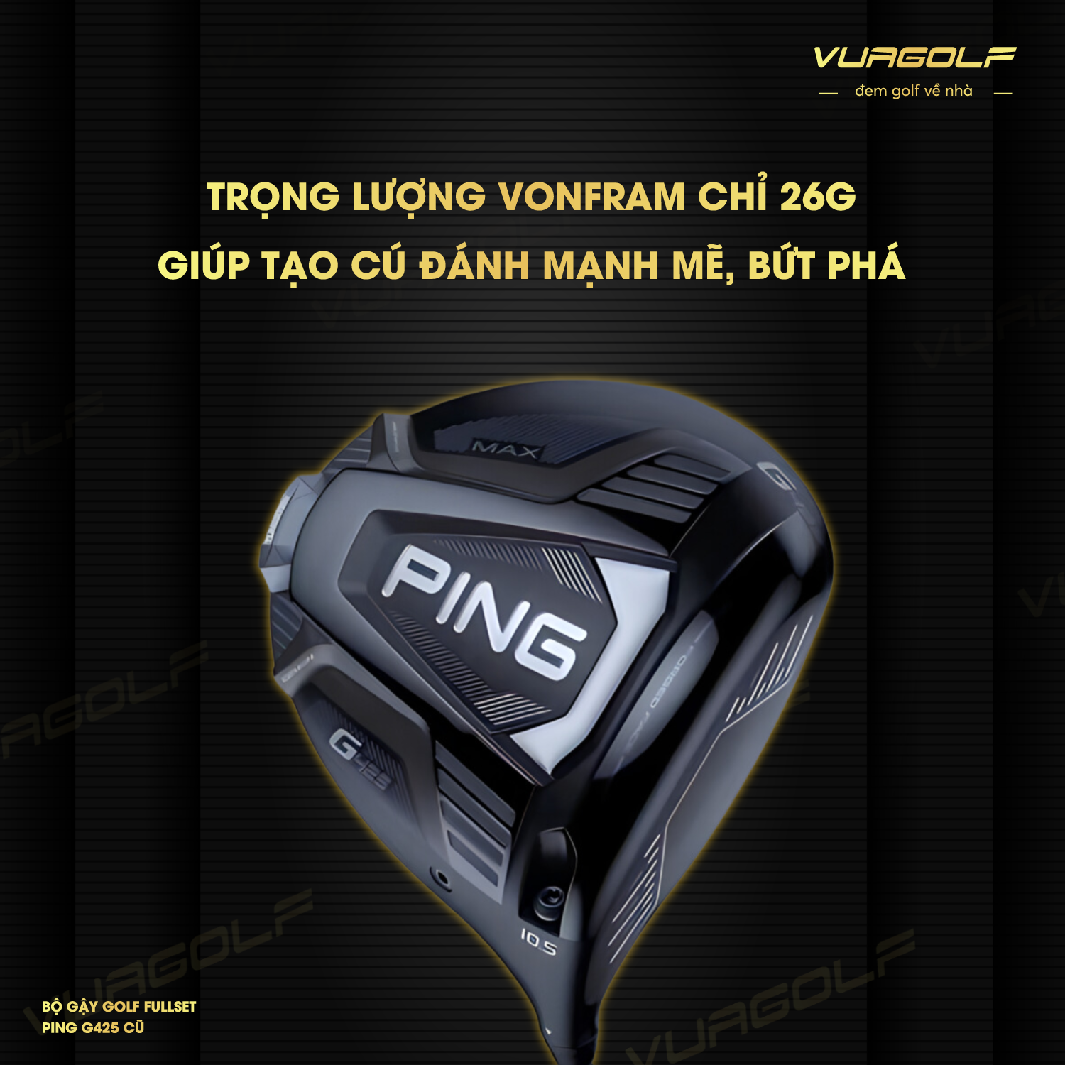 Vua golf là đơn vị phân phối chính thức của thương hiệu Ping tại thị trường Việt Nam. Tại đây, quý khách dễ dàng tìm kiếm được một bộ gậy Golf Fullset Ping G425 cũ chất lượng. Ngoài ra, Vua Golf còn cung cấp nhiều gậy golf và phụ kiện golf cao cấp cũng như thi công lắp đặt sân Golf.