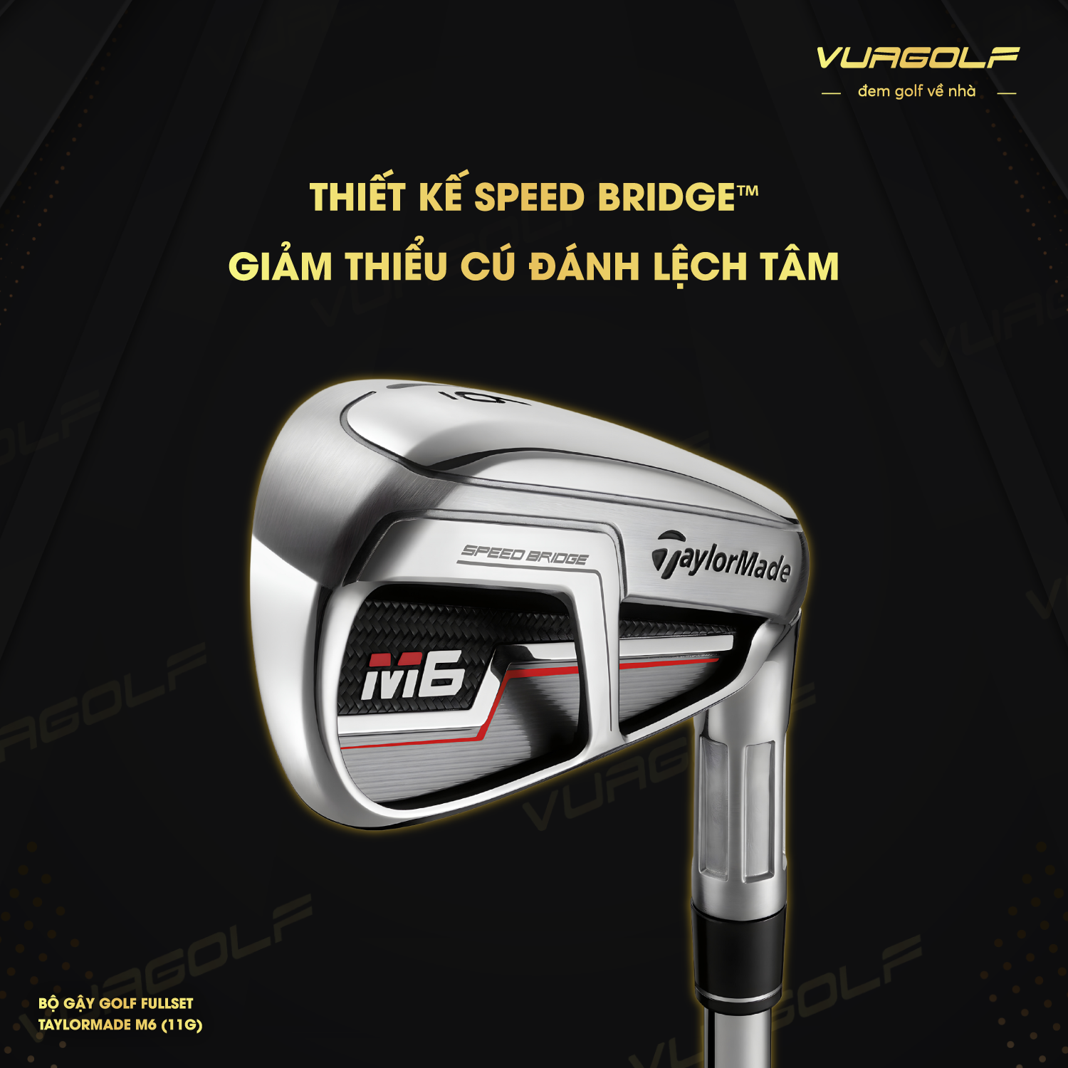 Nhờ công nghệ Speed Bridge, gậy golf Taylormade M6 giảm độ rung của đầu gậy một cách hiệu quả, mang lại cảm giác đánh bóng chân thực và tốc độ ổn định tối đa cho cú swing. Công nghệ Inverted Cone Technology (ICT) và rãnh Speed Pocket được áp dụng trong phần đầu gậy, mở rộng diện tích tiếp xúc với trung tâm mặt gậy để tăng tốc độ bóng.