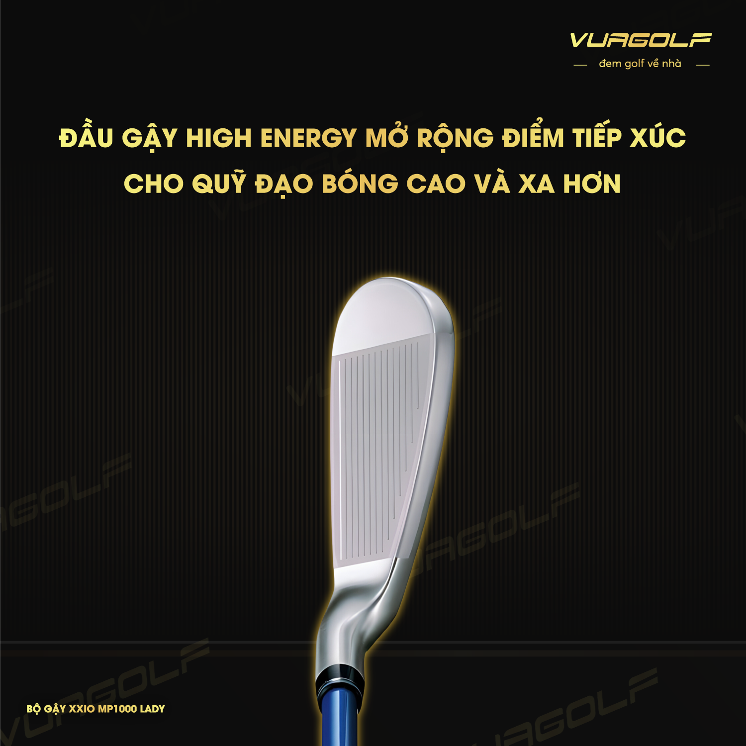 • Công nghệ High Energy Head tạo đường bóng xa hơn: Với High Energy Head, XXIO MP1000 Lady đã được mở rộng vùng COR cao tại mặt gậy. Điều này sẽ giúp cho golfer dễ dàng tìm thấy điểm ngọt và đánh bóng xa hơn.