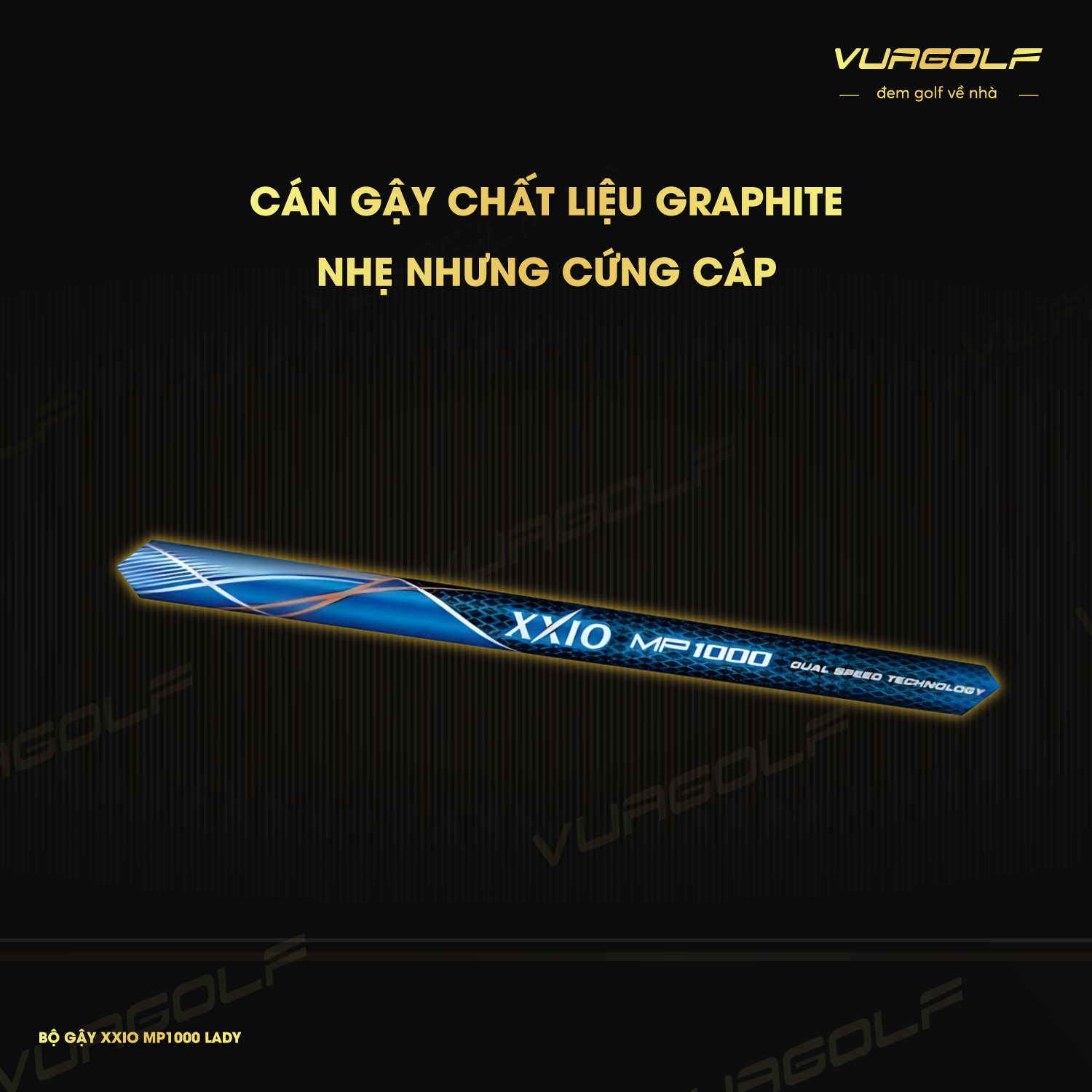 XXIO MP1000 Lady sở hữu hệ thống xoay gắn kết, thiết kế siêu nhẹ cùng cấu trúc gậy golf uốn cong độc đáo. Với những cải tiến về công nghệ, ngoại hình cũng như chất liệu, XXIO MP1000 Ladies là dòng gậy tuyệt vời cho các golfer nữ dễ dàng điều chỉnh khoảng cách và tăng độ chính xác trong những cú đánh ấn tượng trên sân.