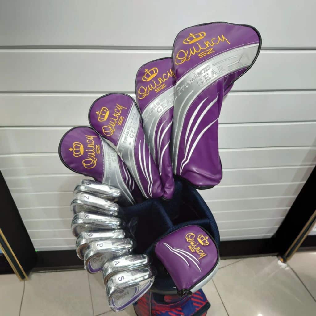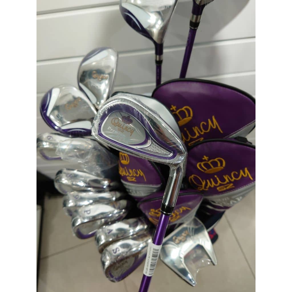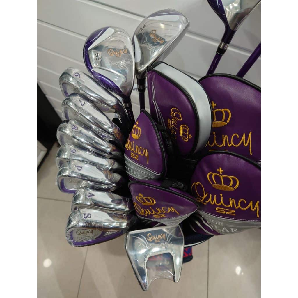 Bộ gậy Quincy SZ Fullset 12 cây gồm W/1,4, UT/22,25, I/6,7,8,9, PW, AW, SW, PT. Màu sắc chủ đạo là màu xanh tím than với huy hiệu vương miện sang trọng đính nổi bật trên mặt sole của gậy.