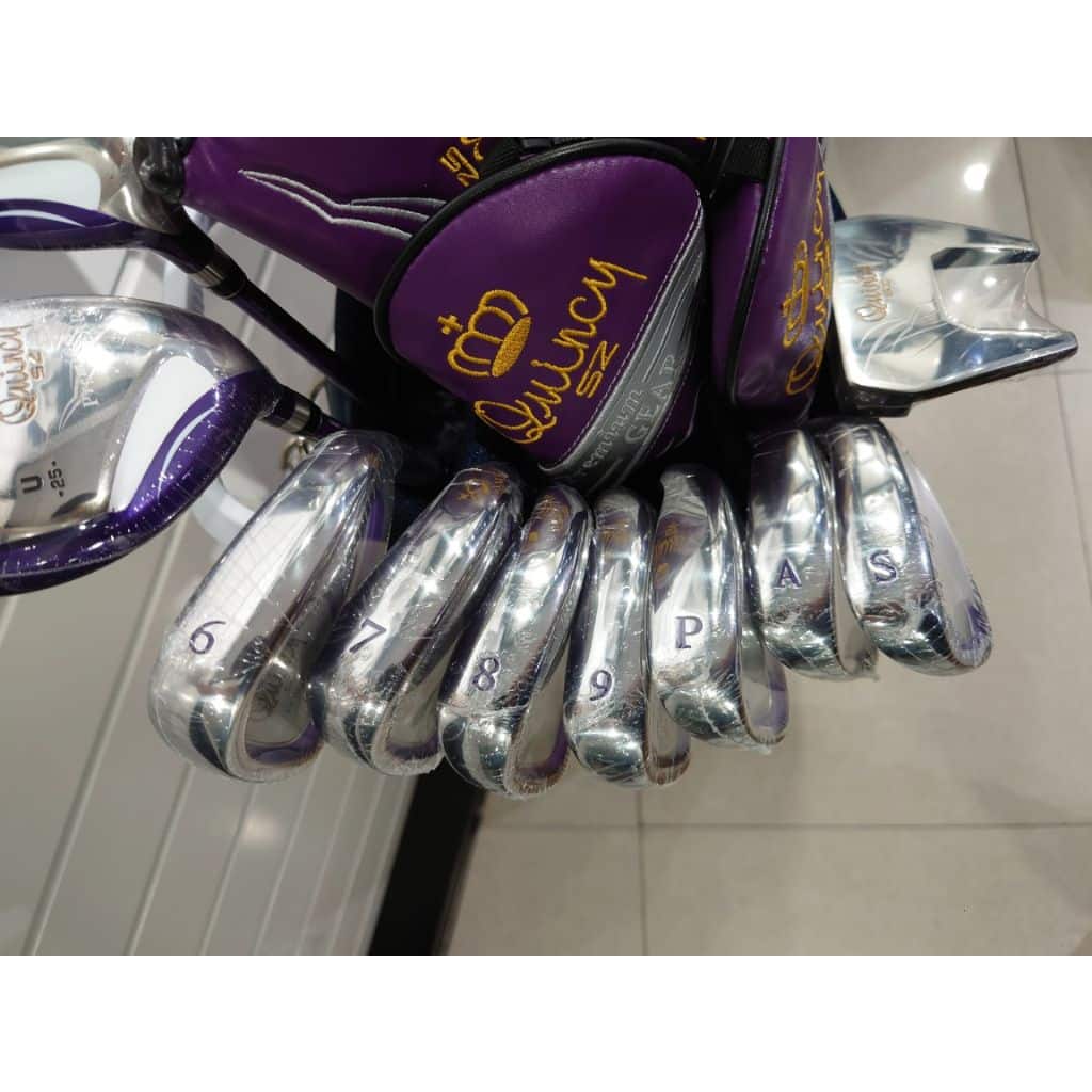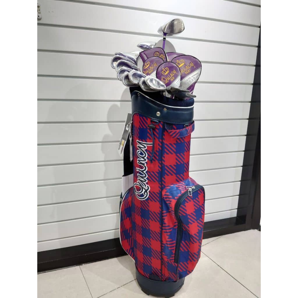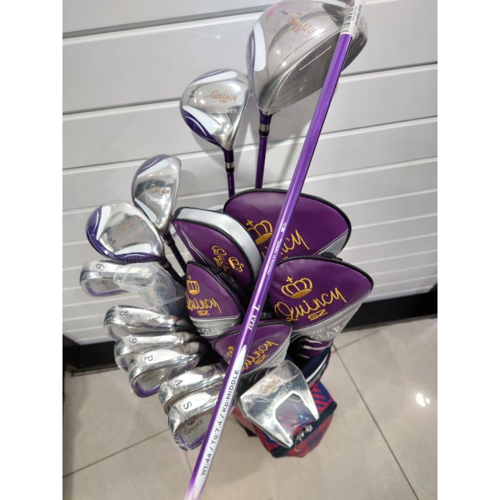 Bộ gậy Quincy SZ Fullset 12 cây gồm W/1,4, UT/22,25, I/6,7,8,9, PW, AW, SW, PT. Màu sắc chủ đạo là màu xanh tím than với huy hiệu vương miện sang trọng đính nổi bật trên mặt sole của gậy.