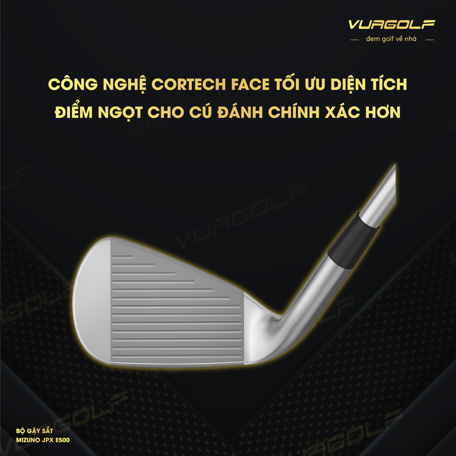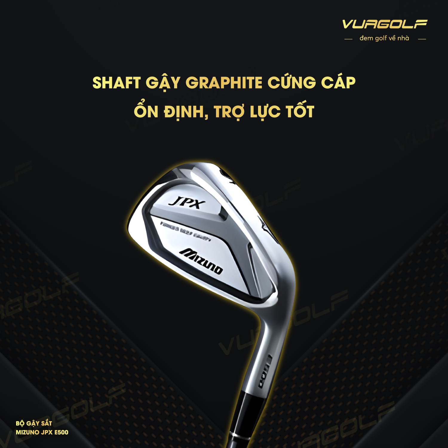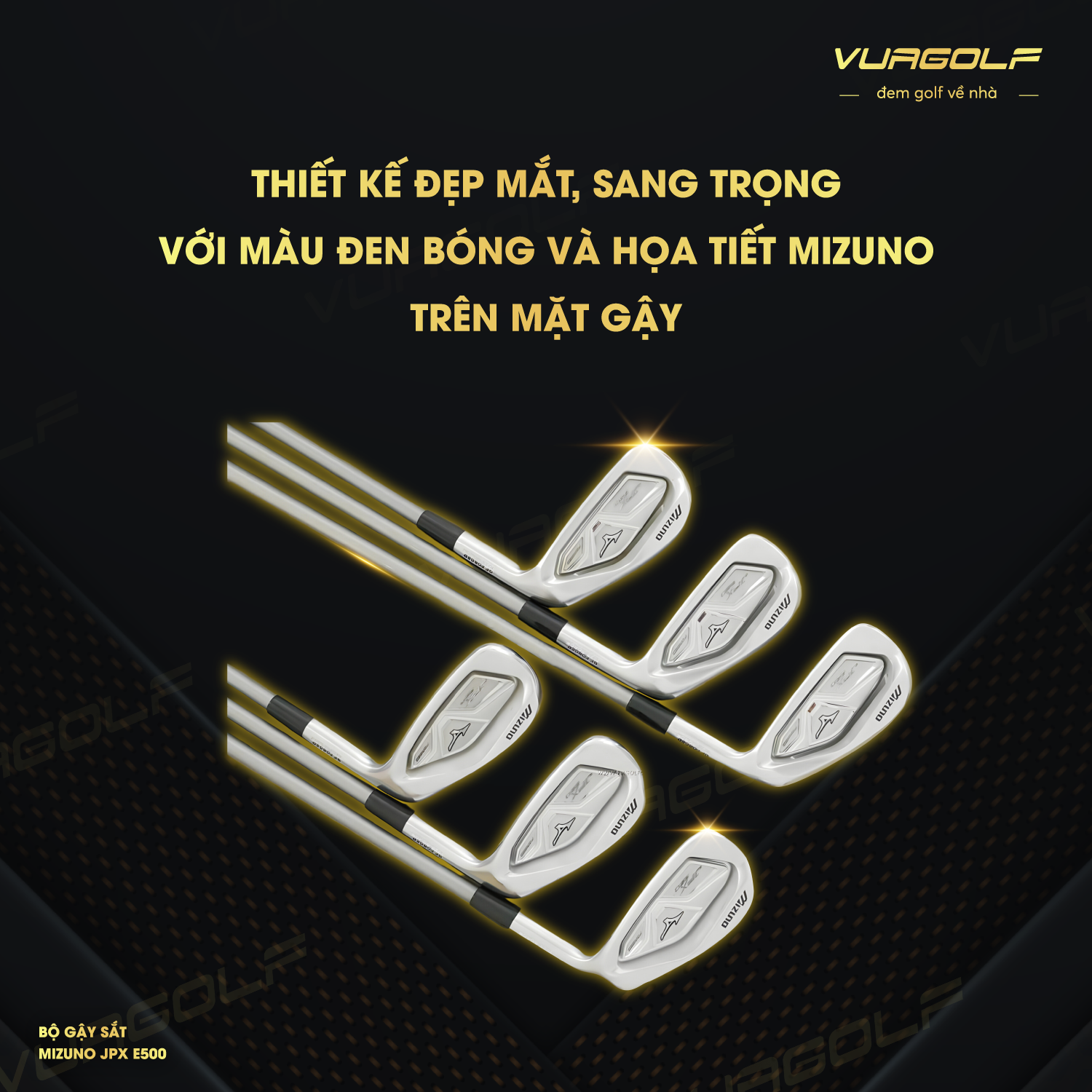 Mizuno JPX E500 là một dòng sản phẩm cao cấp của thương hiệu Mizuno. Gậy sắt được đánh giá cao bởi nhiều golfer chuyên nghiệp nhờ vào chất lượng và tính năng ưu việt: