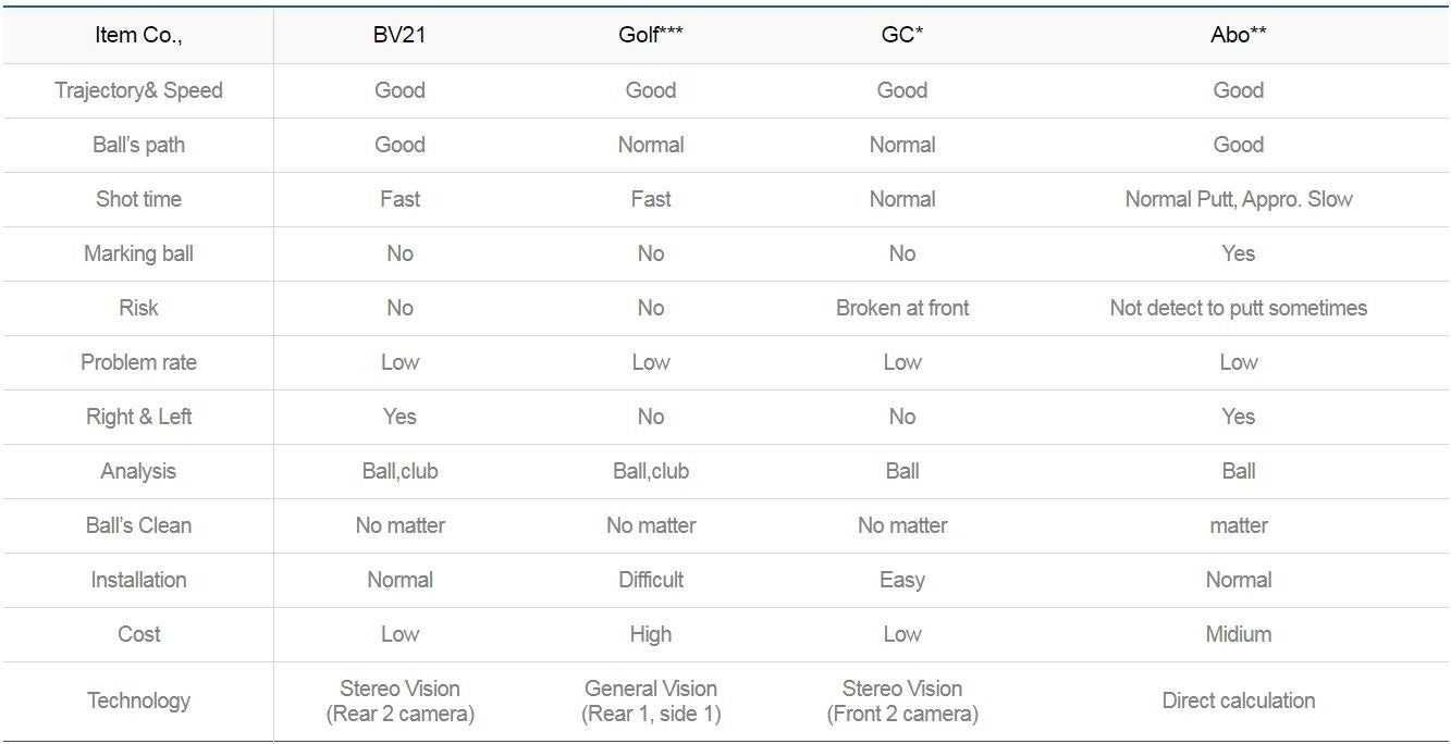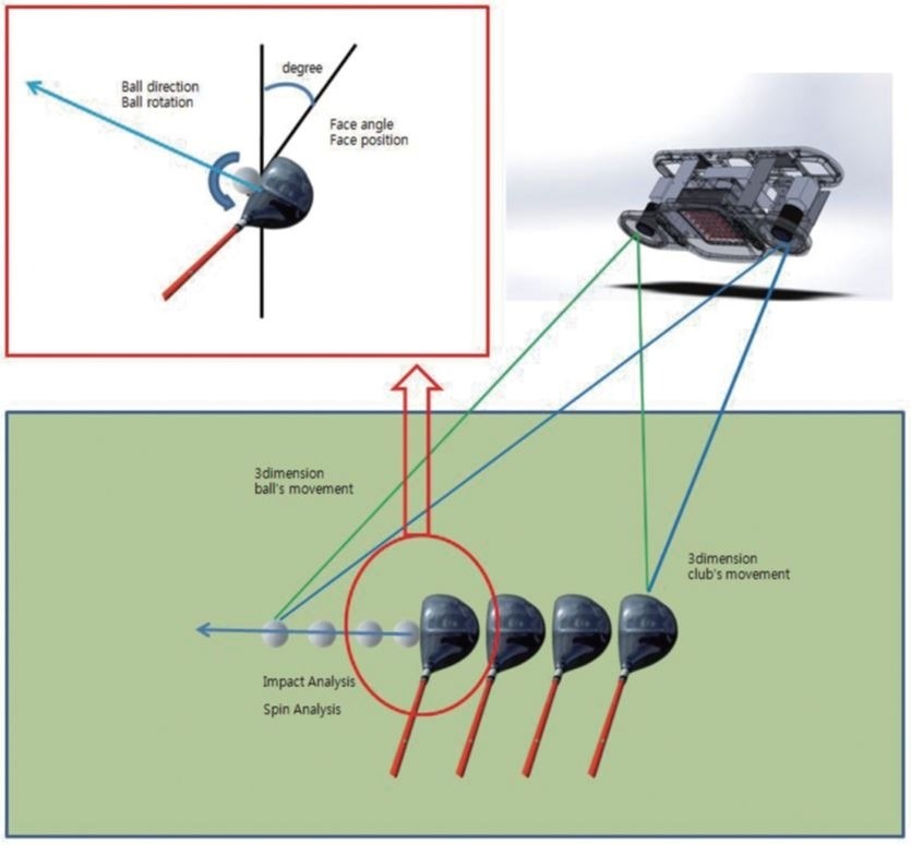 Hệ thống cảm biến golf 3D theo dõi đường bay bóng của mọi cú đánh. Đối với mỗi cú đánh, khoảng cách, tốc độ bóng, tốc độ đầu gậy, quỹ đạo, v.v. được hiển thị.
