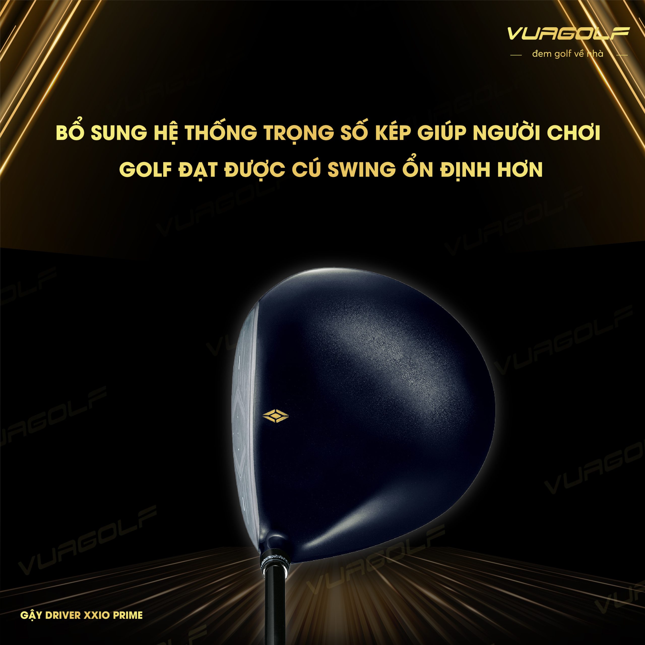 - Hệ thống trọng số kép trong phiên bản XXIO Prime giúp người chơi golf đạt được cú swing ổn định hơn. Trọng lượng được định vị ở gót chân và đế gậy, thúc đẩy góc phóng cao hơn và khoảng cách xa hơn với mỗi cú vung gậy.