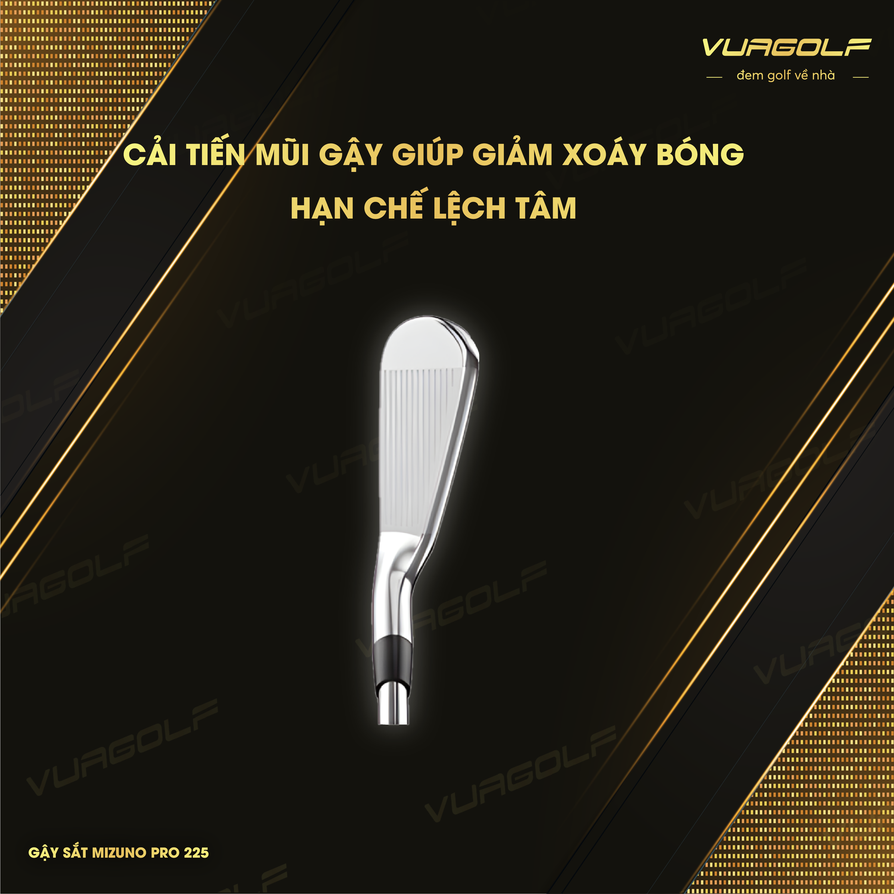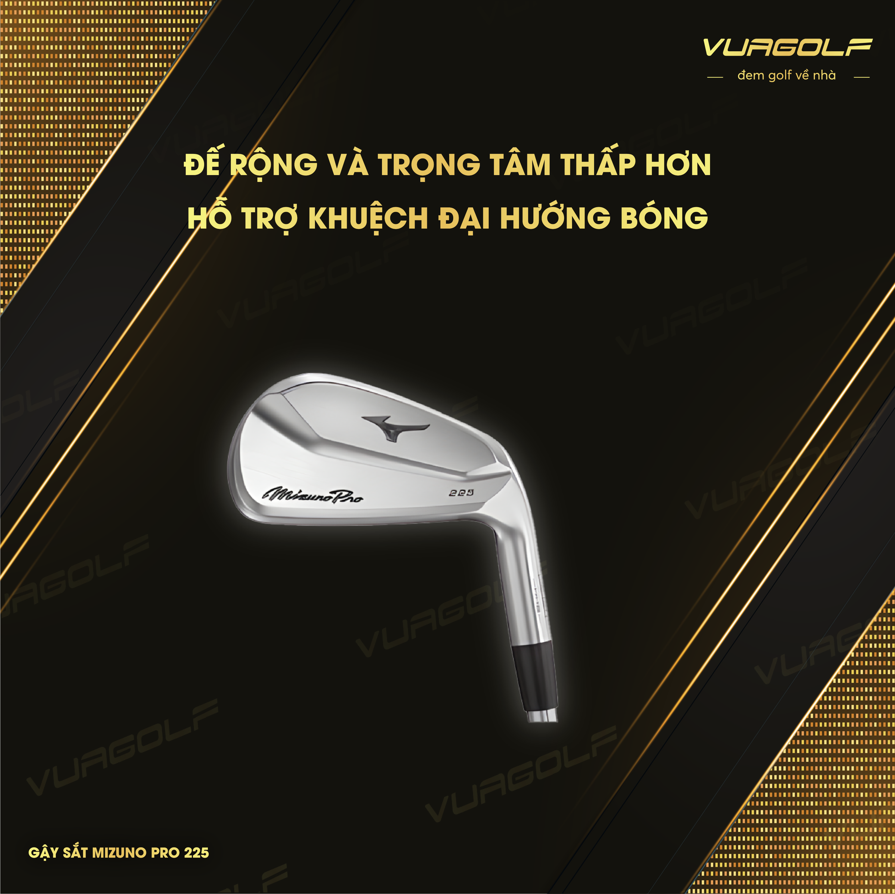 - Gậy sắt Mizuno Pro 225 là một cây gậy đánh gôn nam hiệu suất cao và được chế tạo chính xác, được thiết kế dành cho những người chơi gôn chuyên nghiệp. Gậy được chế tạo với công nghệ tiên tiến và sự khéo léo của chuyên gia để cung cấp độ chính xác, khoảng cách và khả năng kiểm soát tối đa trên green.