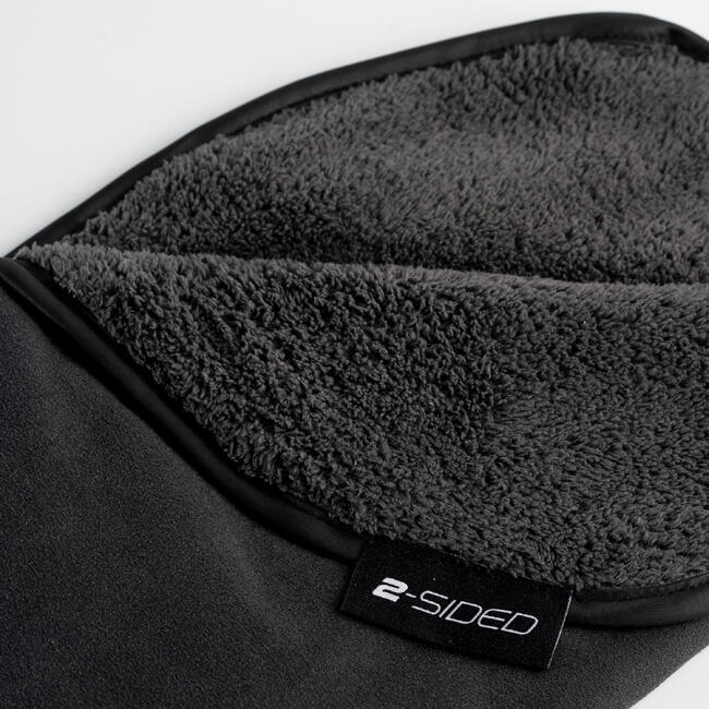 Khăn lau có một mặt bằng sợi microfibre bên ngoài có khả năng thấm hút và nhanh khô, và mặt kia dệt nhung vòng bên trong, khi được làm ẩm, có thể dùng để lau sạch kỹ hơn các rãnh trên gậy golf. Chúng tôi đã thêm một lớp màng giữa hai mặt để giữ cho mặt trong ẩm lâu hơn, nhất là trong thời tiết nóng.