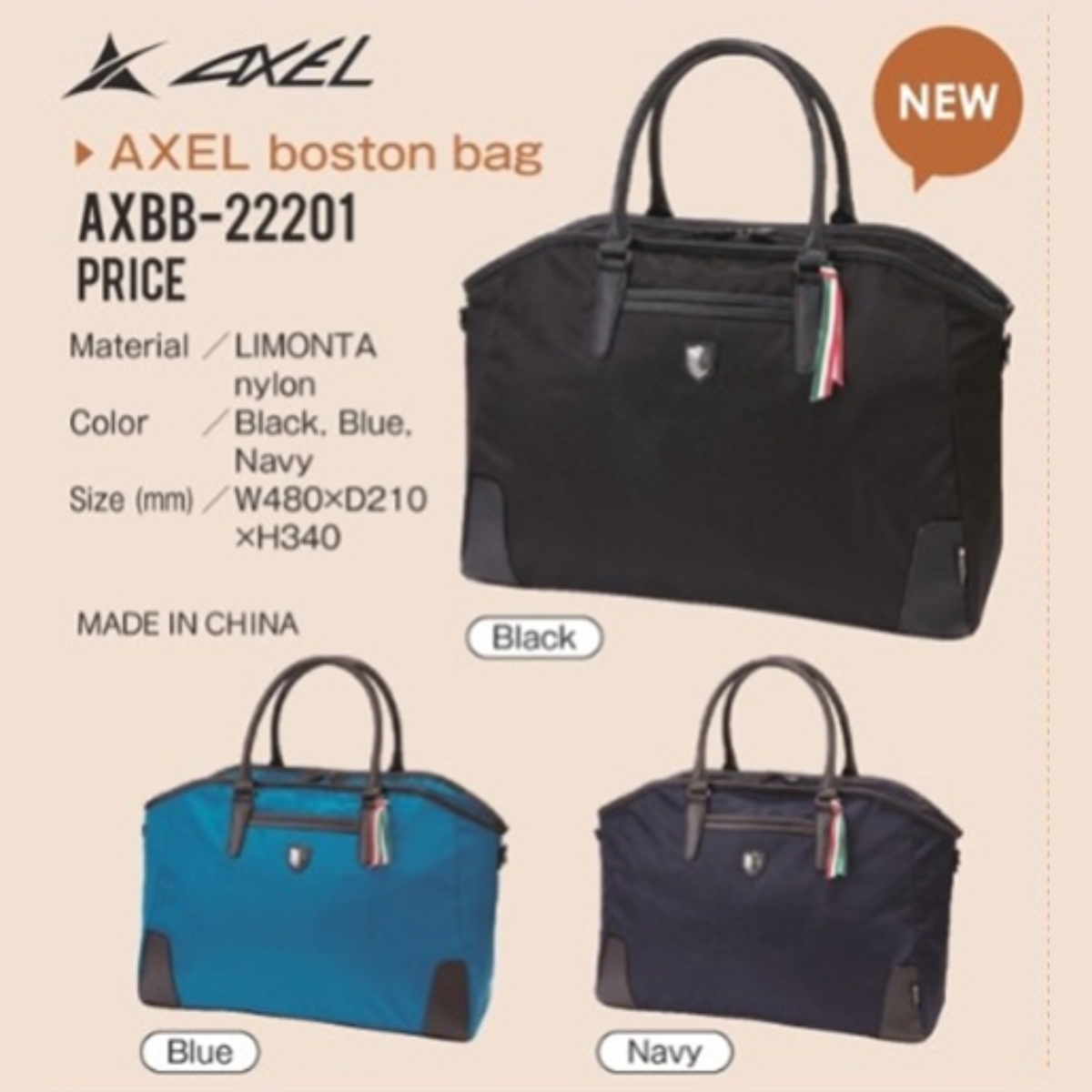 Túi Axel Boston AXBB-22201 có chiều rộng 48 cm, dài 21 cm, cao 34 cm, với 3 màu sắc chính: đen, xanh da trời và xanh navy, thiết kế tối giản, tinh tế trang nhã và dễ phối đồ.